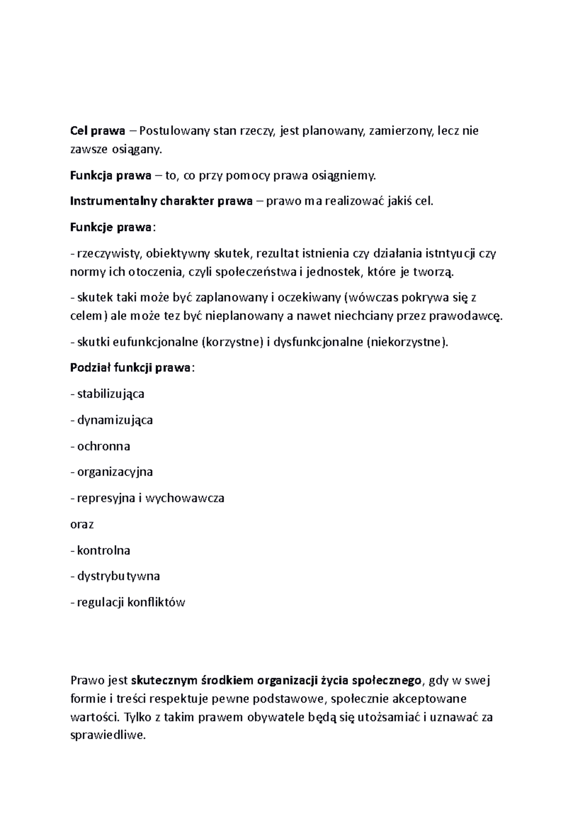 Podstawy prawa - notatki - Cel prawa – Postulowany stan rzeczy, jest ...