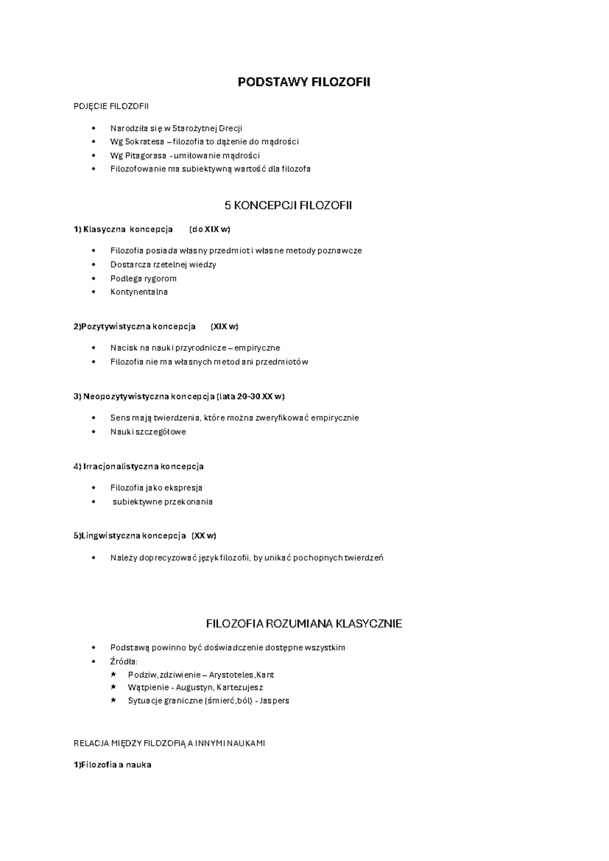 Podstawy filozofii - Notatki z zajęć do egzaminu - PODSTAWY FILOZOFII ...