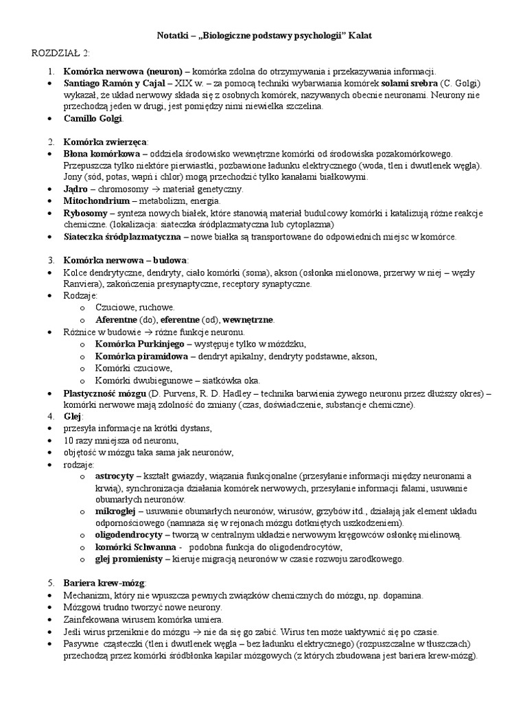 Notatki - Biologiczne Podstawy Psychologii Kalat | PDF
