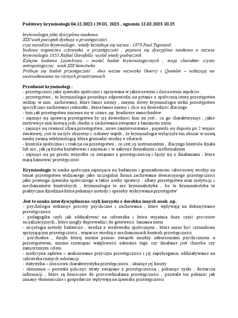 Notatki Podstawy Kryminologi | PDF