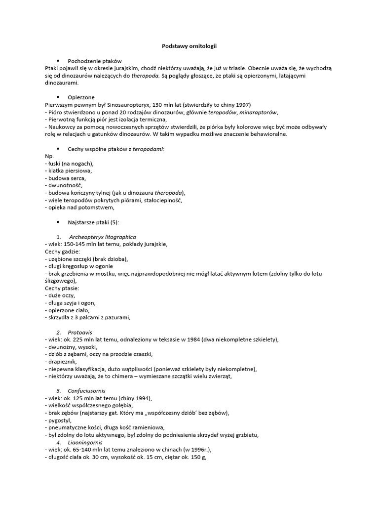 Podstawy Ornitologii - Notatki | PDF