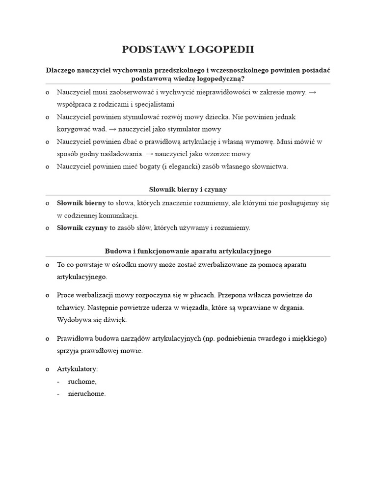 PODSTAWY LOGOPEDII - Notatki | PDF