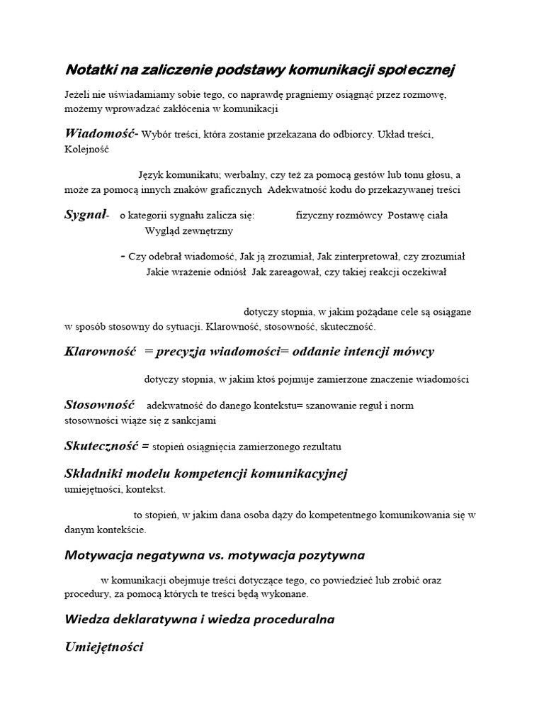 Notatki Na Zaliczenie Podstawy Komunikacji Społecznej | PDF