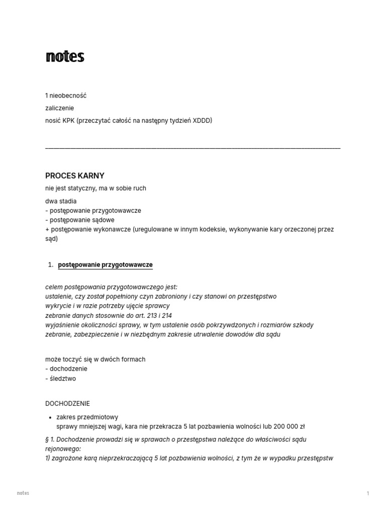 Notatki podstawy procesu karnego | PDF