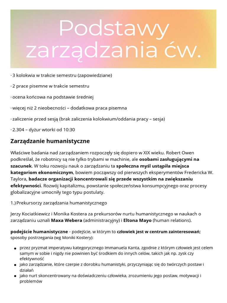 Podstawy zarządzania - notatki - Studocu