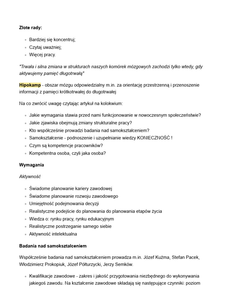 Notatki Podstawy Samokształcenia | PDF