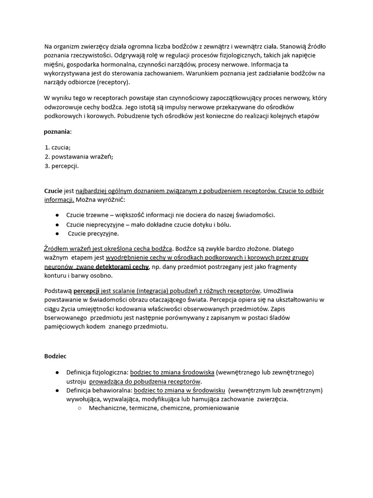 Biologiczne Podstawy Zachowania - Notatki z Wykładów BZ-101 - Studocu