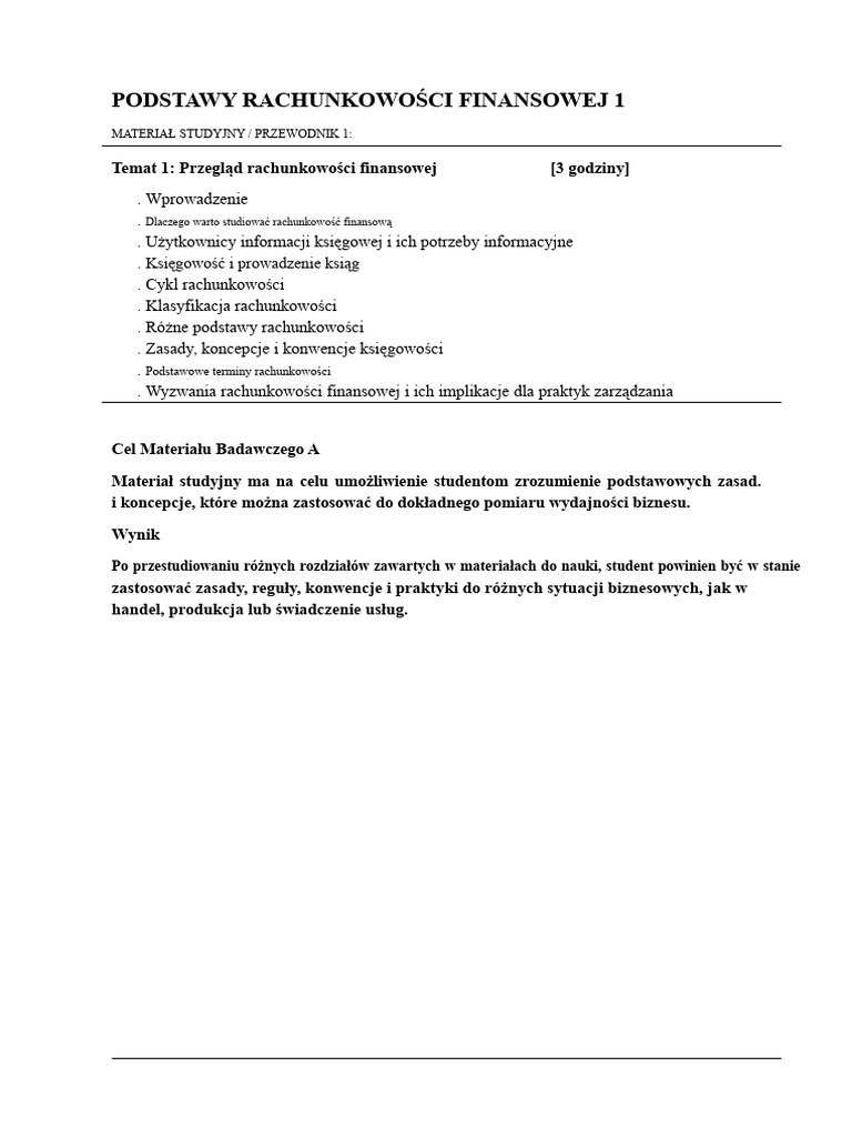 Podstawy Rachunkowości Notatki 1 | PDF