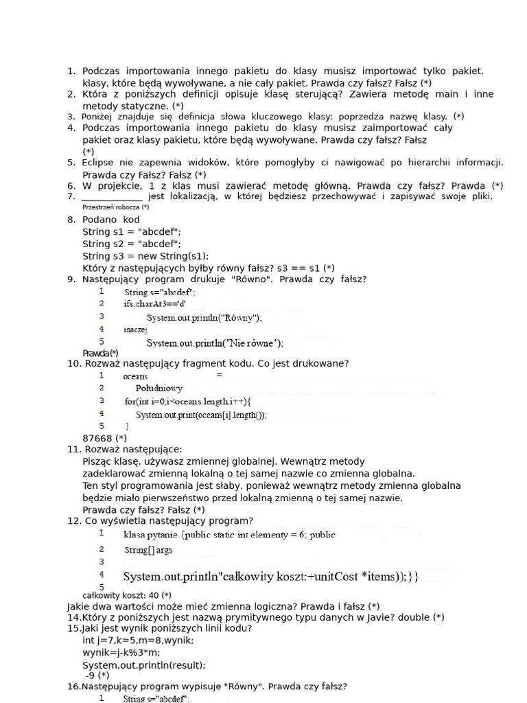 Test: JF Podstawy Javy Egzamin Końcowy | PDF