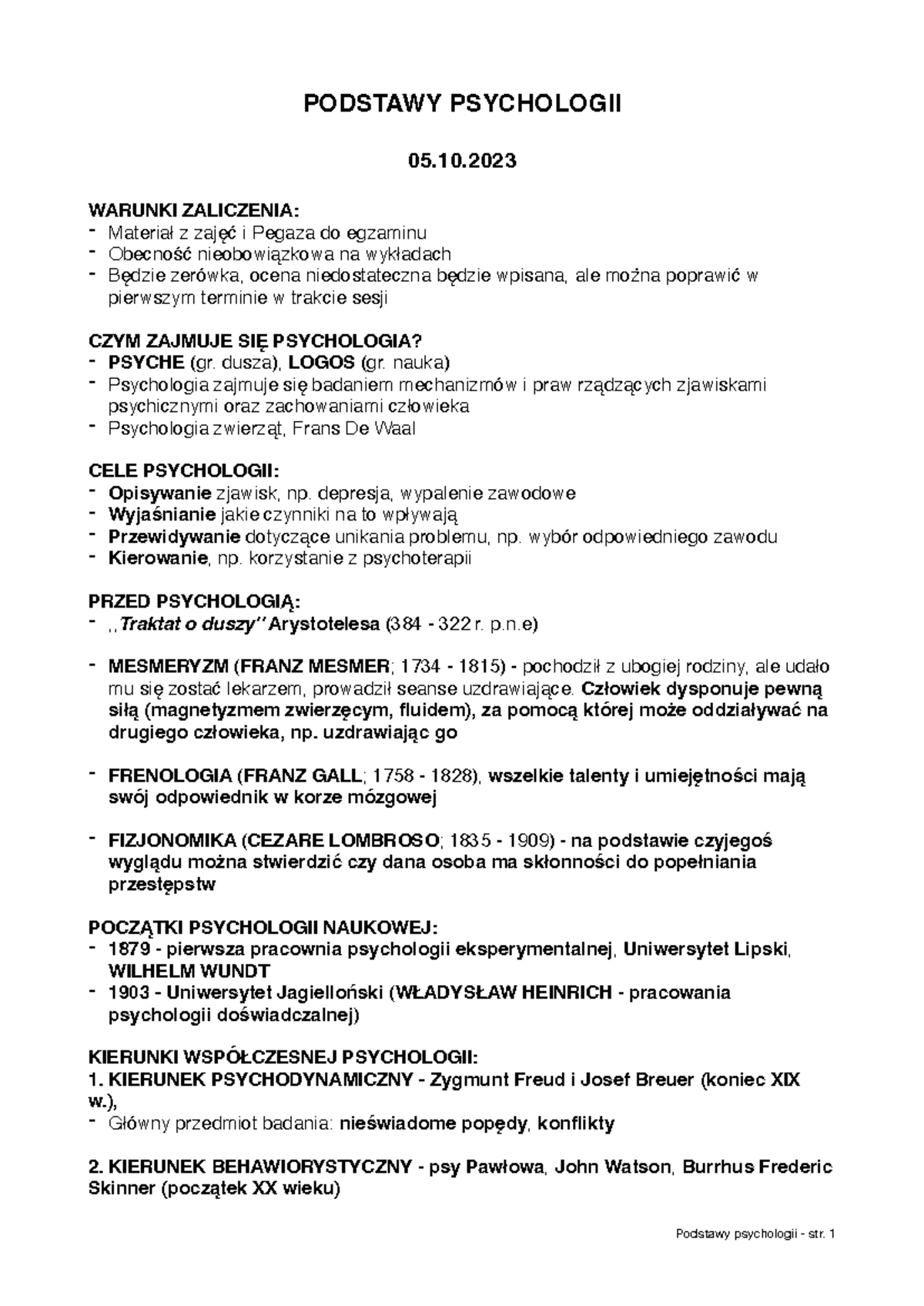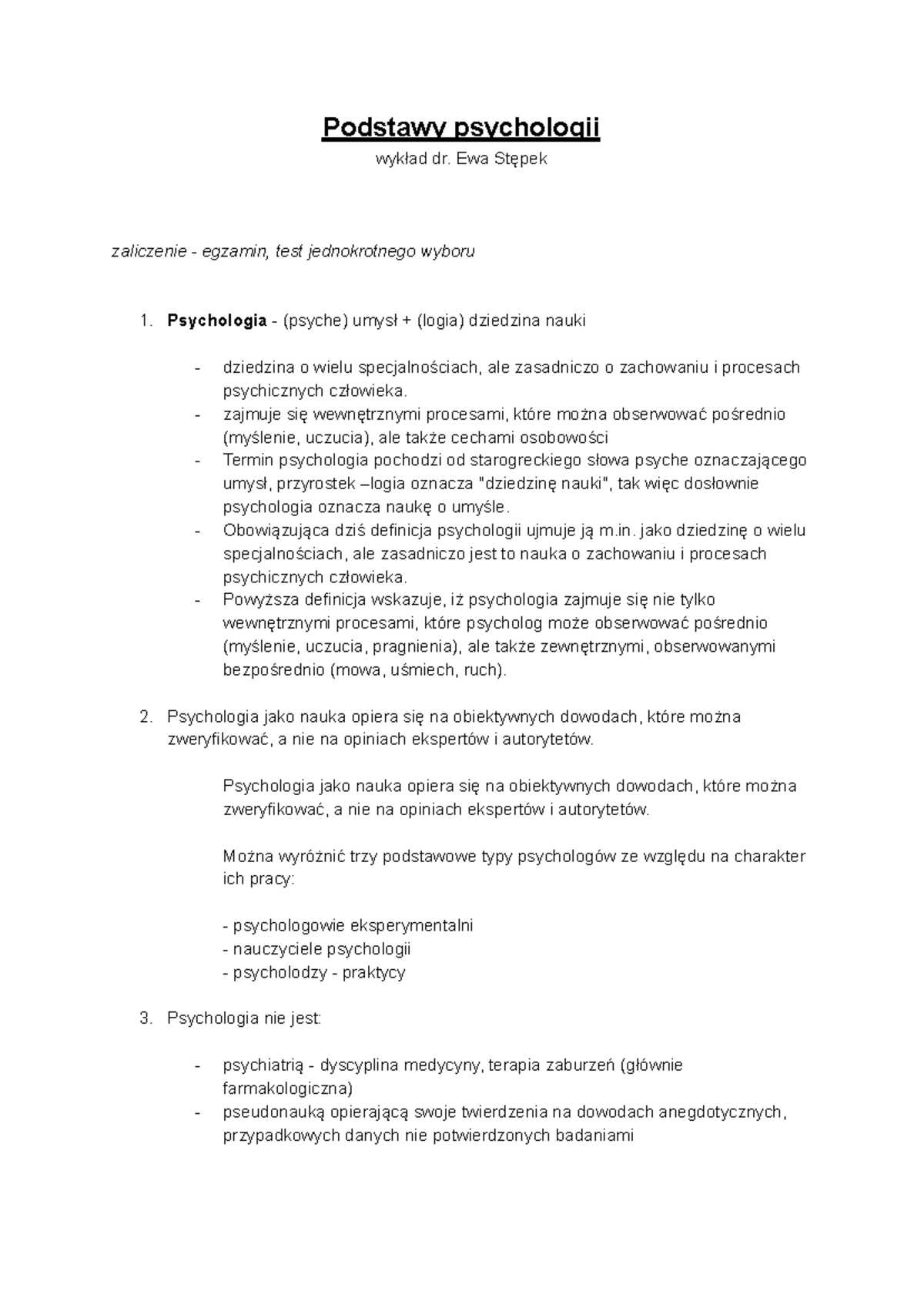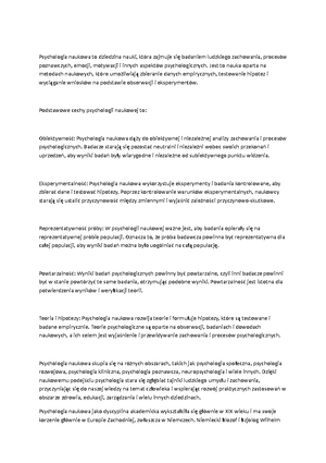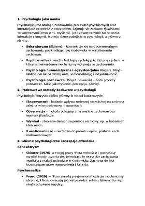 Podstawy psychologii - wykład notatki - 1. Psychologia jako nauka ...