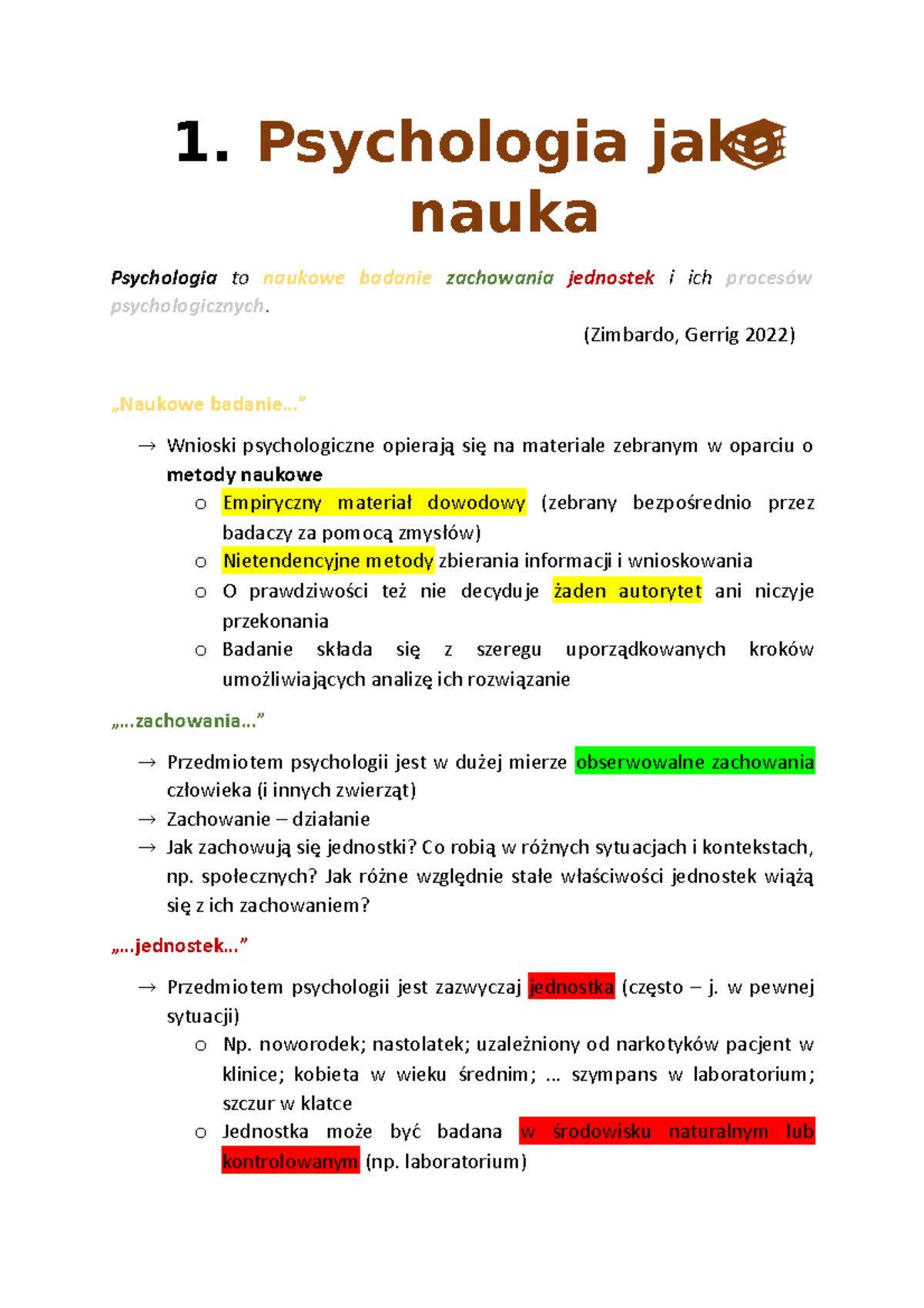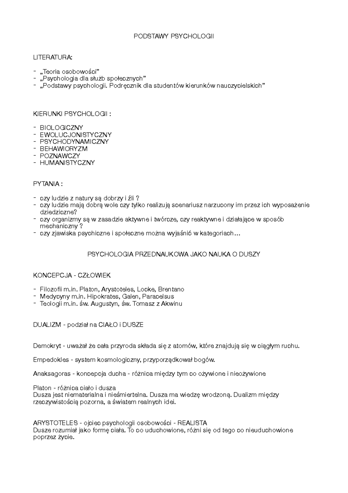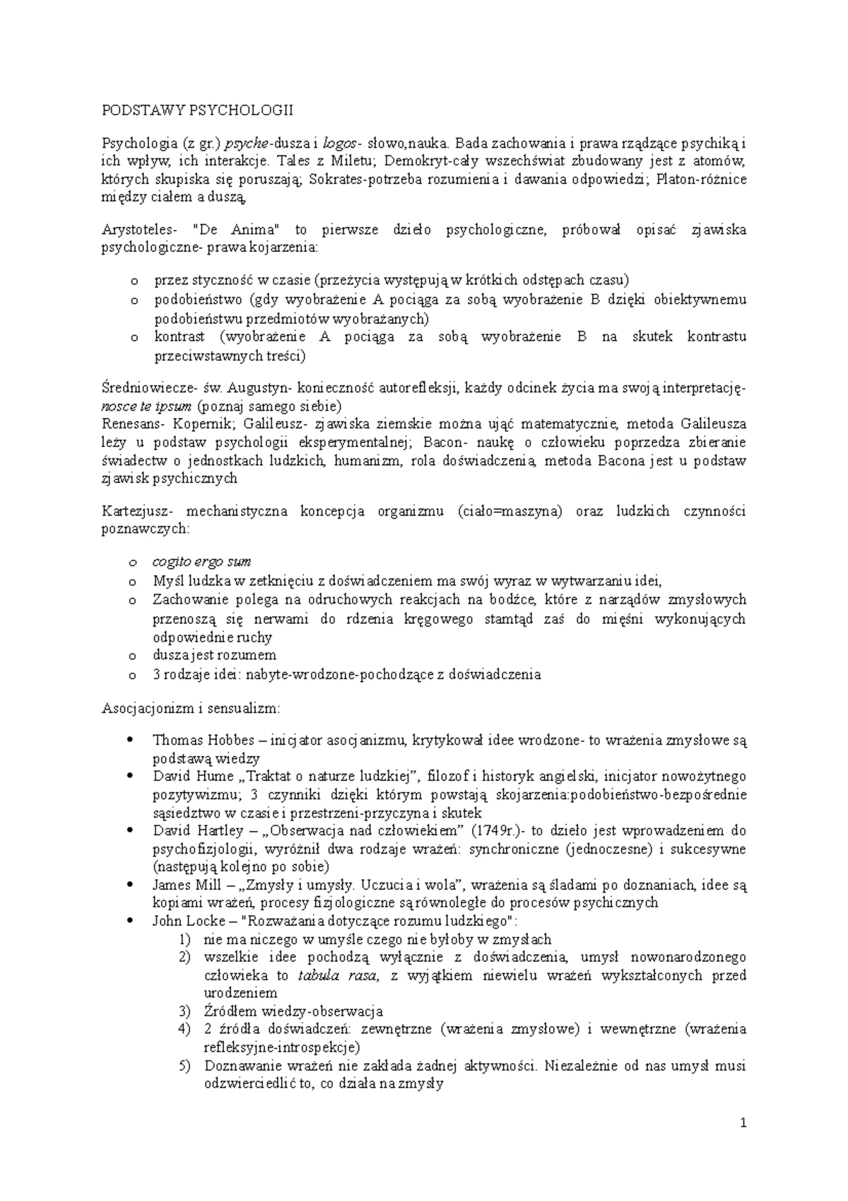 Podstawy psychologii - wykład notatki - 1. Psychologia jako nauka ...