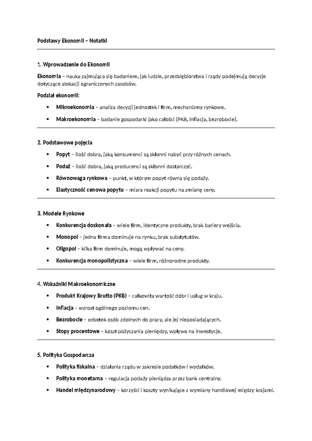 Podstawy Ekonomii - Notatki do Kursu Ekonomii Wprowadzenie i Modele ...