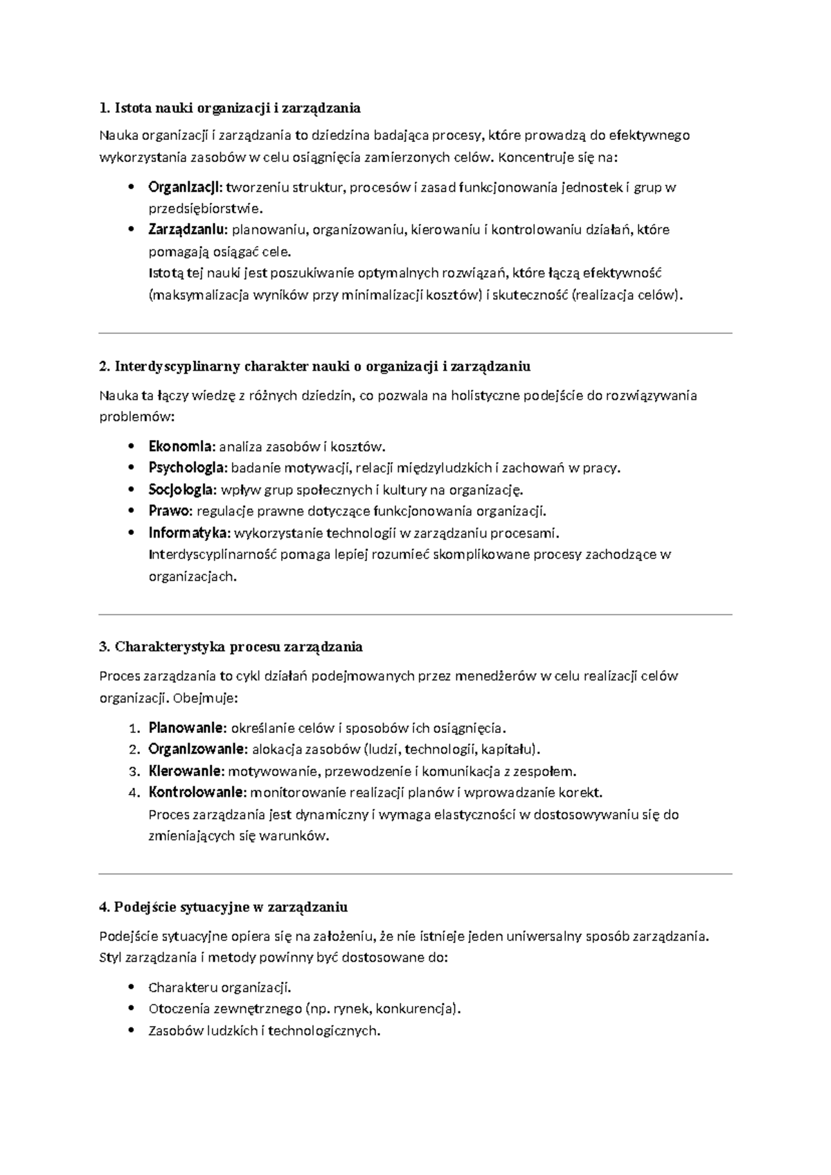 Podstawy zarządzania - Notatki z wykładu 1-7 - Studocu