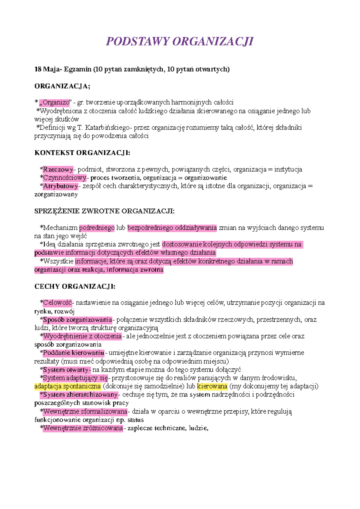 Notatki Podstawy Organizacji i Zarządzania - PODSTAWY ORGANIZACJI 18 ...