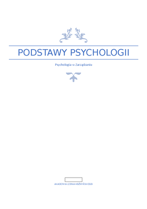 Podstawy psychologii - notatki do wykładu z psychologii (UKW) - Studocu