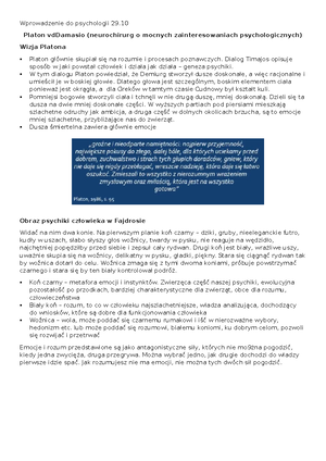 Podstawy Psychologii - Wykładowe Notatki i Kluczowe Teorie - Studocu