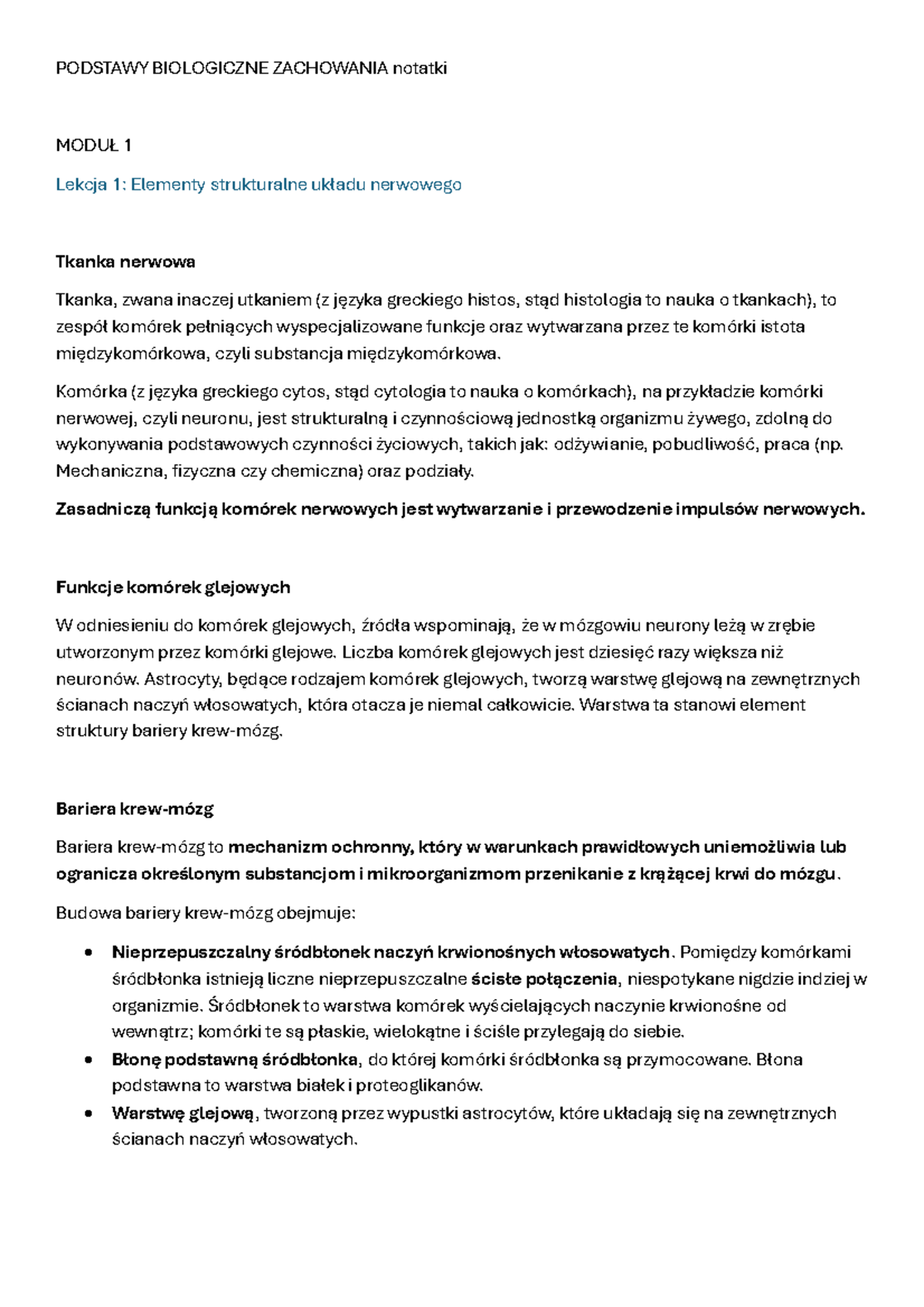 PODSTAWY BIOLOGICZNE ZACHOWANIA - Notatki z Lekcji 1-8 Moduł 1 - Studocu