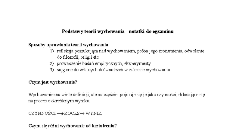 Podstawy teorii wychowania - notatki do egzaminu Sposo - Studocu