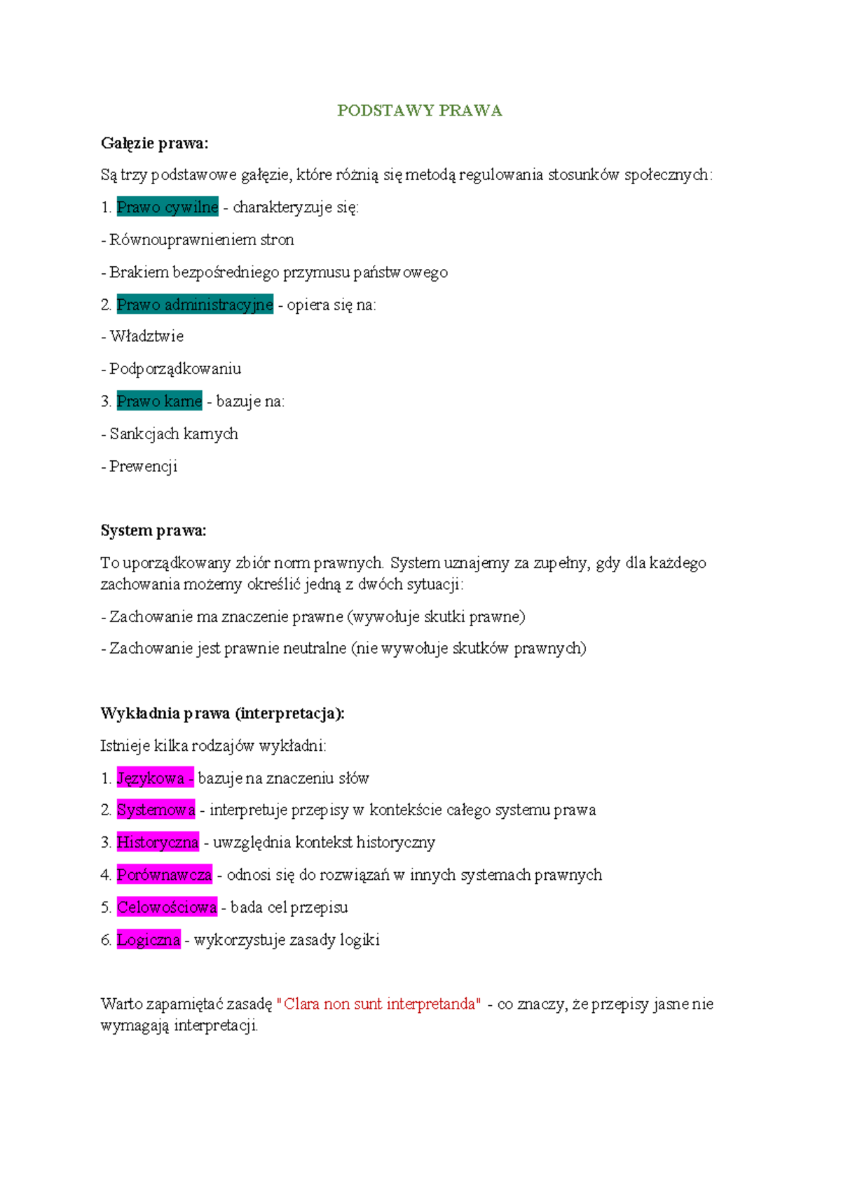 Podstawy prawa notatki do egzaminu z wszystkich zajęć - Podstawy prawa ...