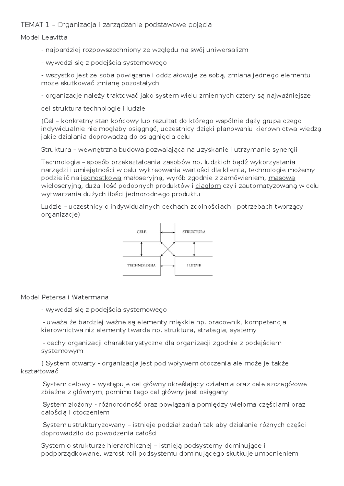 Podstawy Zarządzania Notatki - Temat 1: Wprowadzenie do zarządzania 1 ...