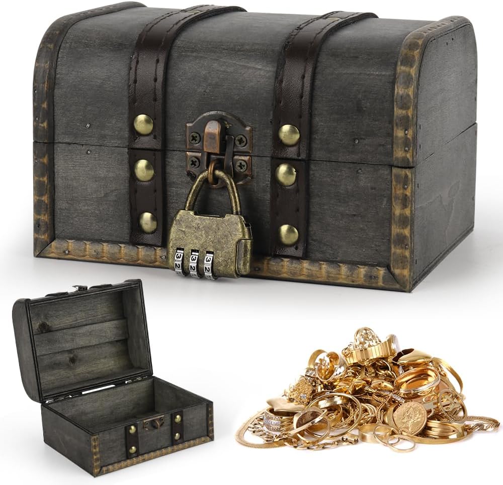 HOMURY Vintage Holz Schatztruhe, Schatztruhe mit Zahlenschloss ...