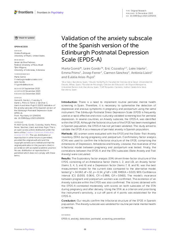 (PDF) EPDS as a Tool for Screening Postnatal Anxiety Disorders