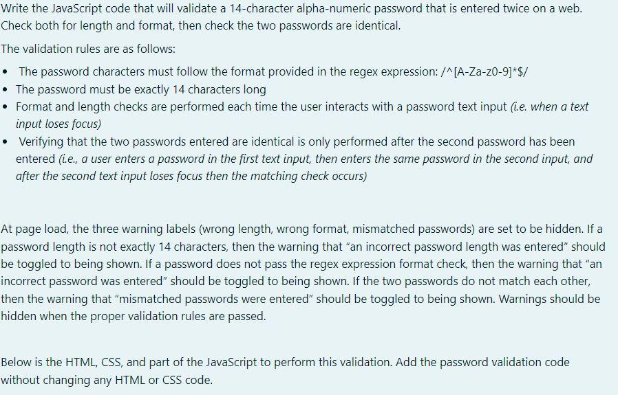Solved Write the JavaScript code that will validate a | Chegg.com