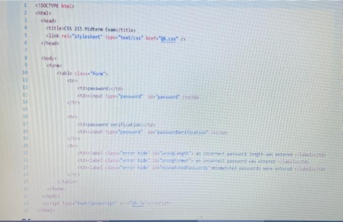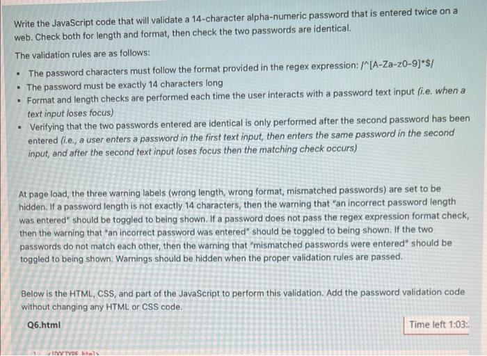 Answered: Write the HTML and the JavaScript code that validates a ...