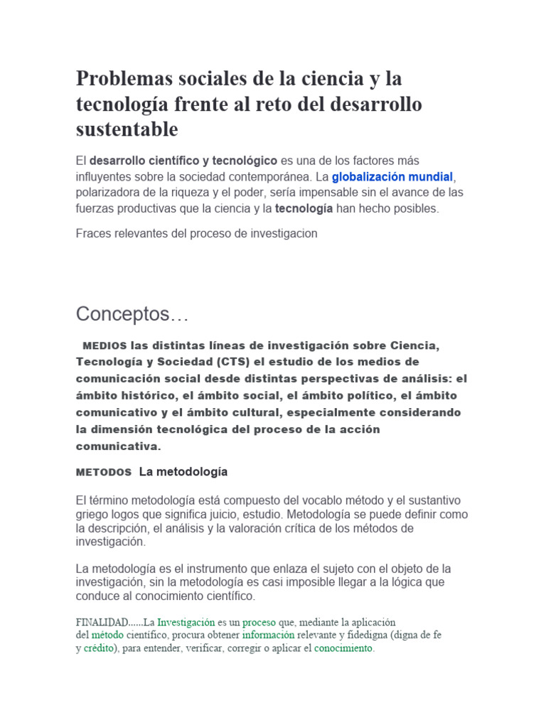 Problemas sociales en ciencia y tecnología | PDF | Teoría | Conocimiento