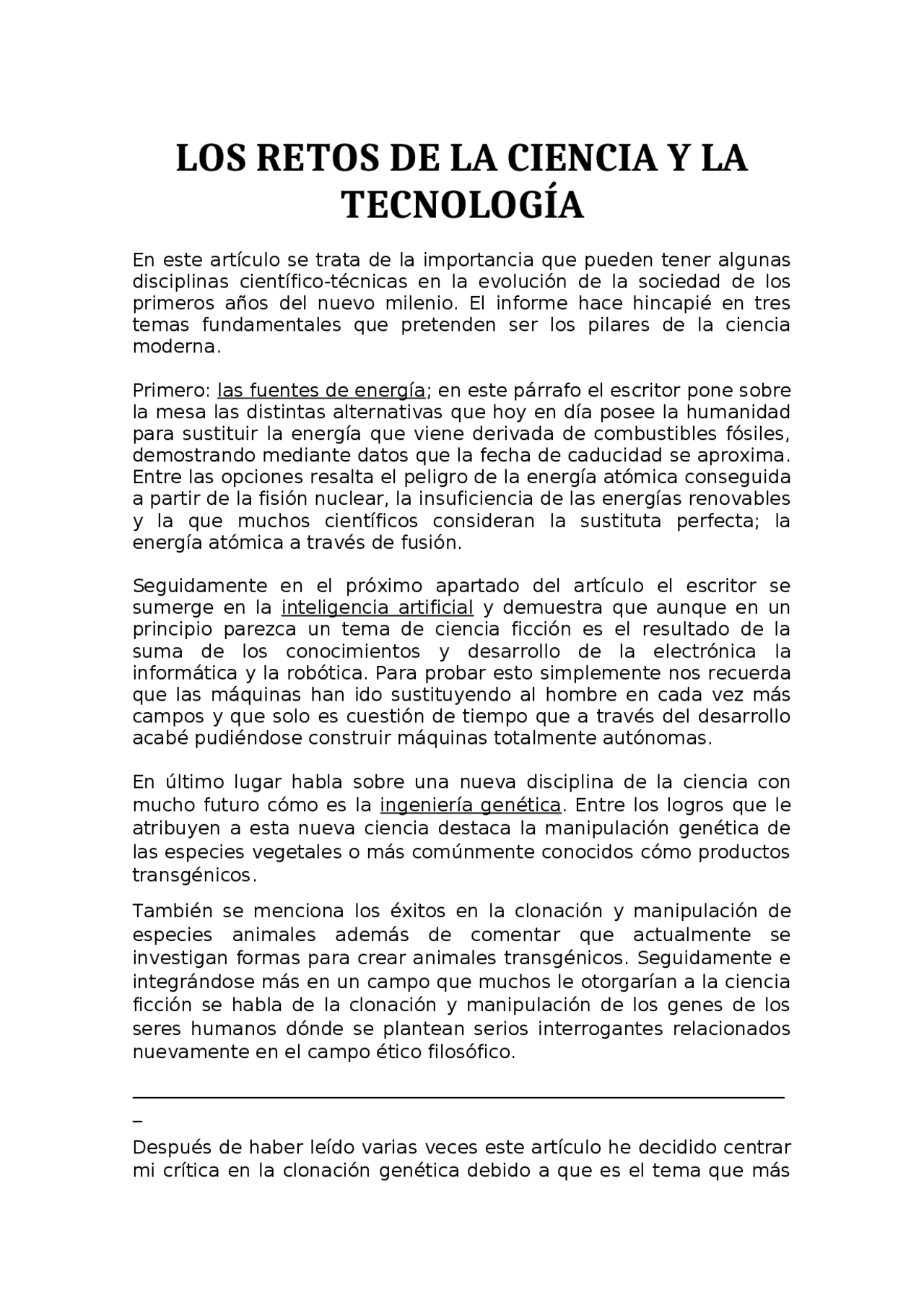 LOS RETOS DE LA CIENCIA Y LA TECNOLOGÍA - Docsity