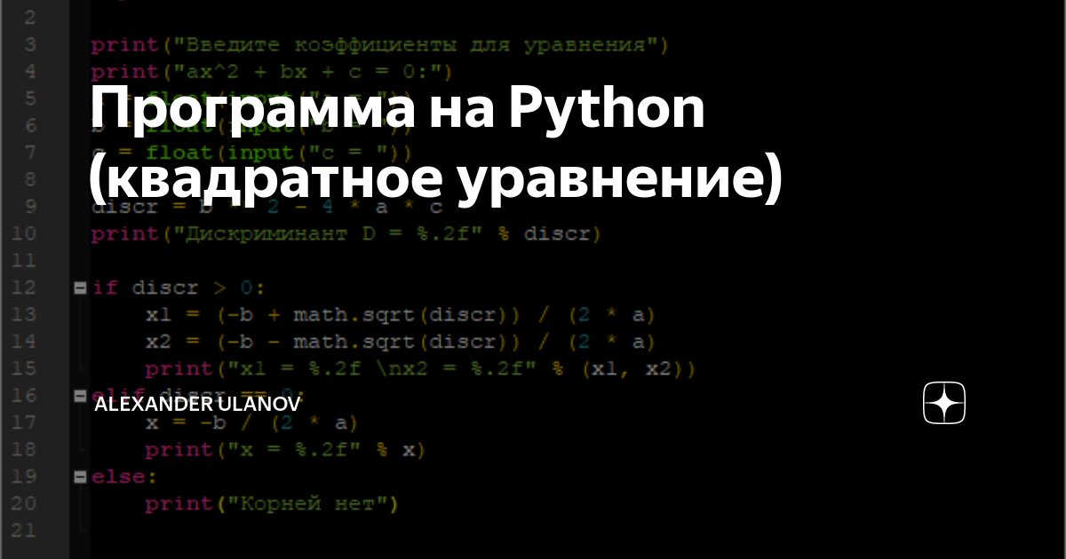 Программа на Python (квадратное уравнение) | Alexander Ulanov | Дзен