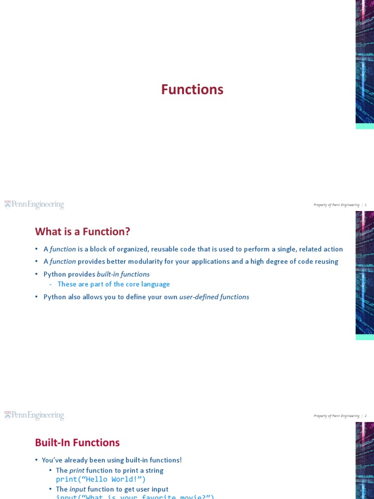 Python Intro To Function | PDF | Parameter (Computer Programming ...
