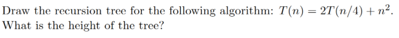 Solved Draw the recursion tree for T(n)=T(n3)+T(n4)+Θ(n) to | Chegg.com