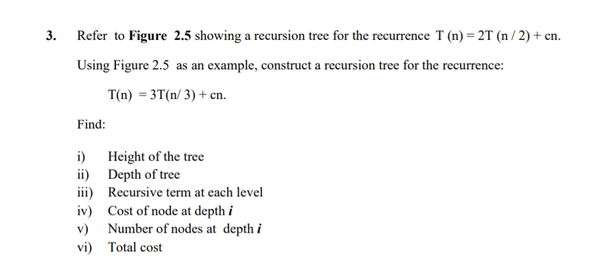 Solved 3. Refer to Figure 2.5 showing a recursion tree for | Chegg.com