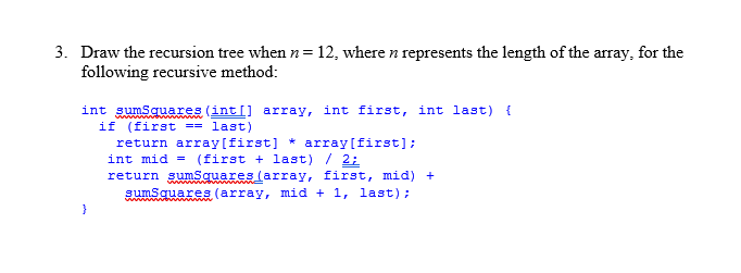 Solved 3. Draw the recursion tree when n=12, where n | Chegg.com