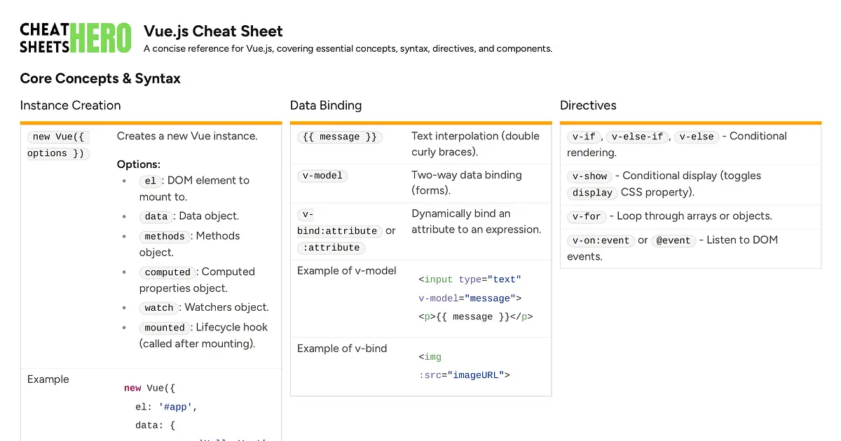 Vue.js Cheat Sheet Cheatsheet | Cheat Sheets Hero