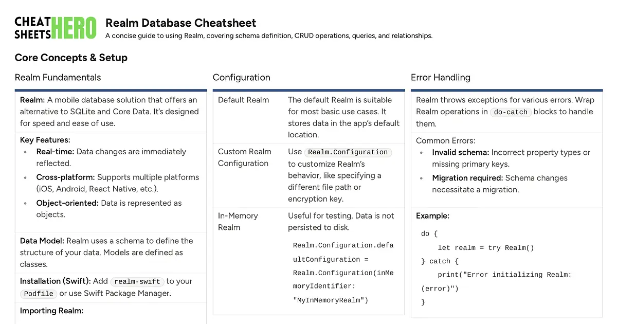 Realm Database Cheatsheet | Cheat Sheets Hero