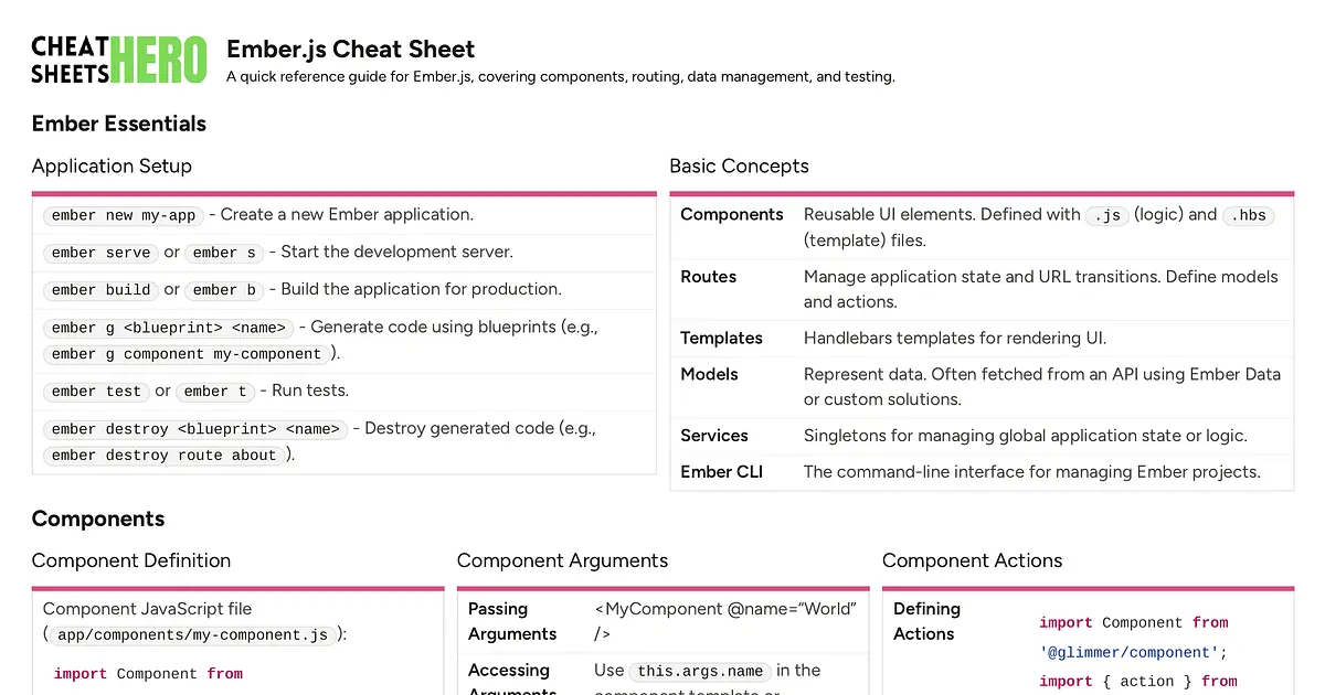 Ember.js Cheat Sheet Cheatsheet | Cheat Sheets Hero