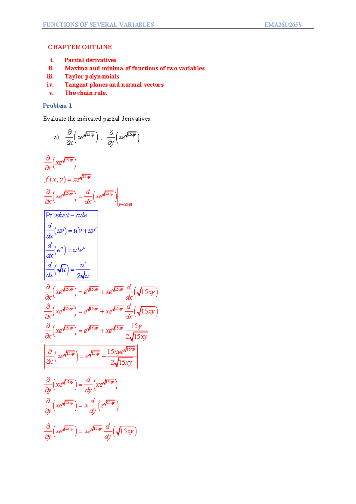 Functions of Several Variables: EMA261/265S Chapter Overview - Studocu