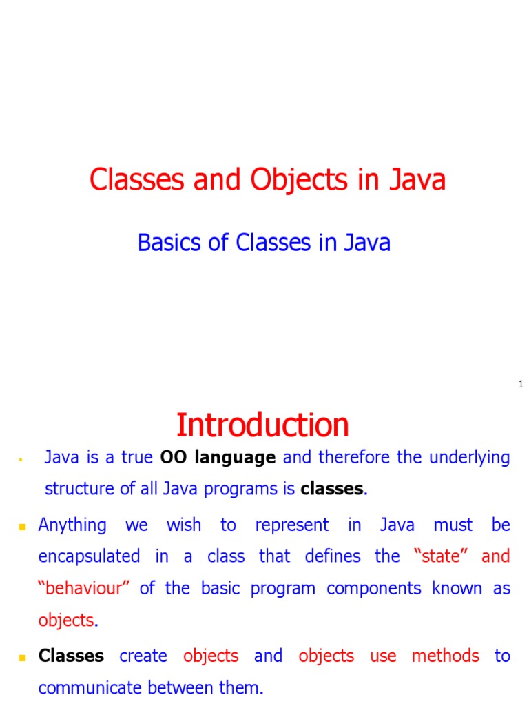 OOP Note 1: Class and Object Concepts in Java Programming - Studocu