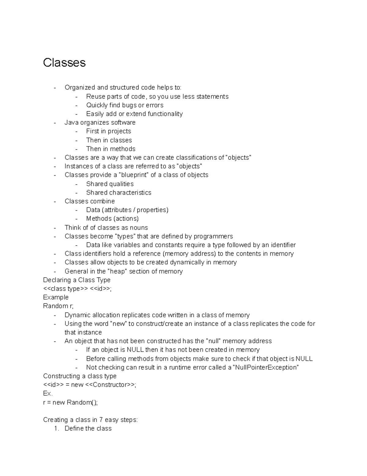 Java Object Classes Overview - Week 10 Lecture Notes - Studocu
