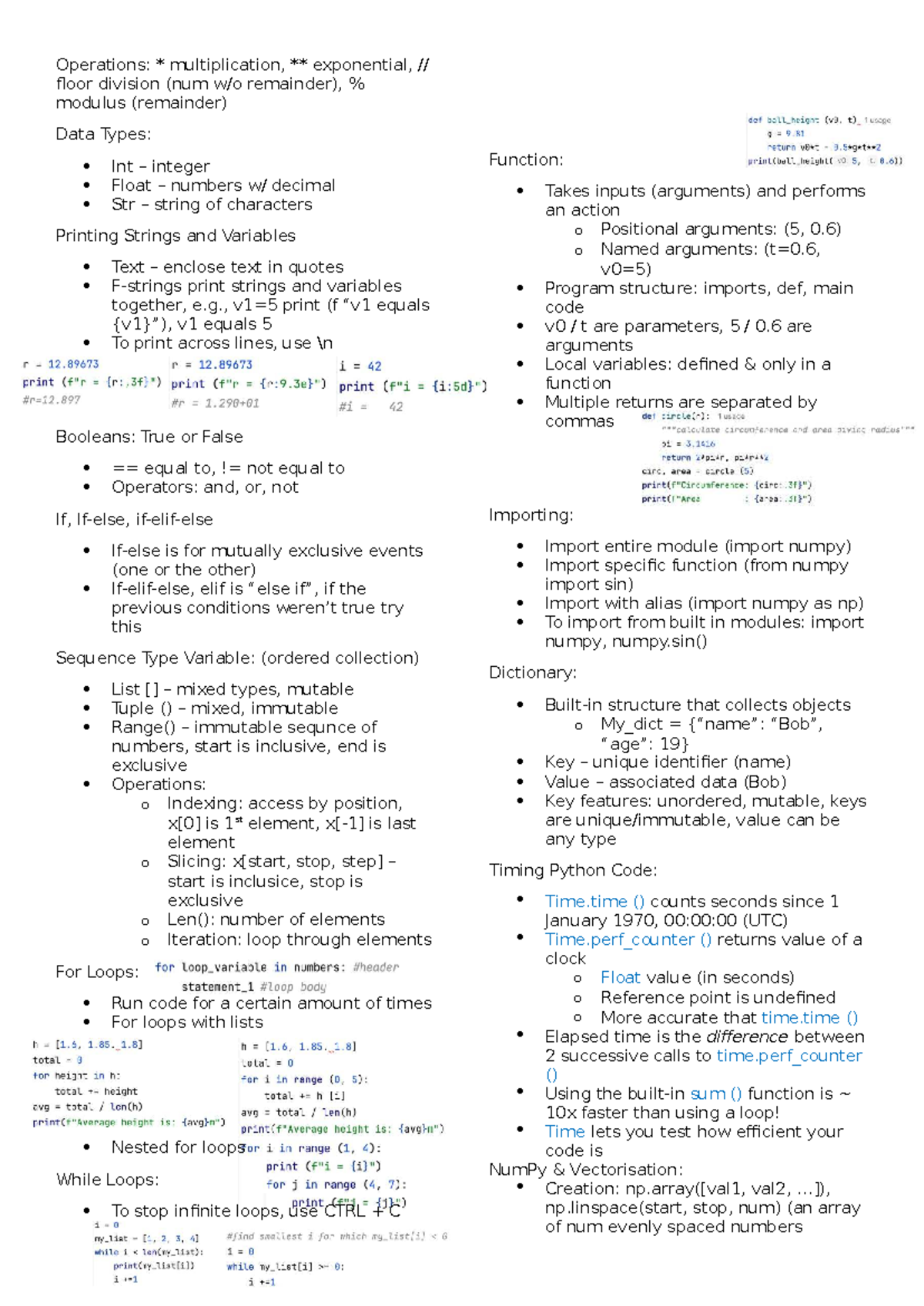 ENGG1003 Final Exam Cheat Sheet: Operations, Data Types, and Functions ...
