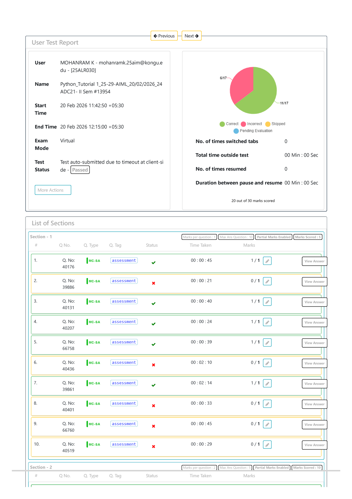 User Test Report: Python_Tutorial II Sem - 20 Feb 2026 - Studocu