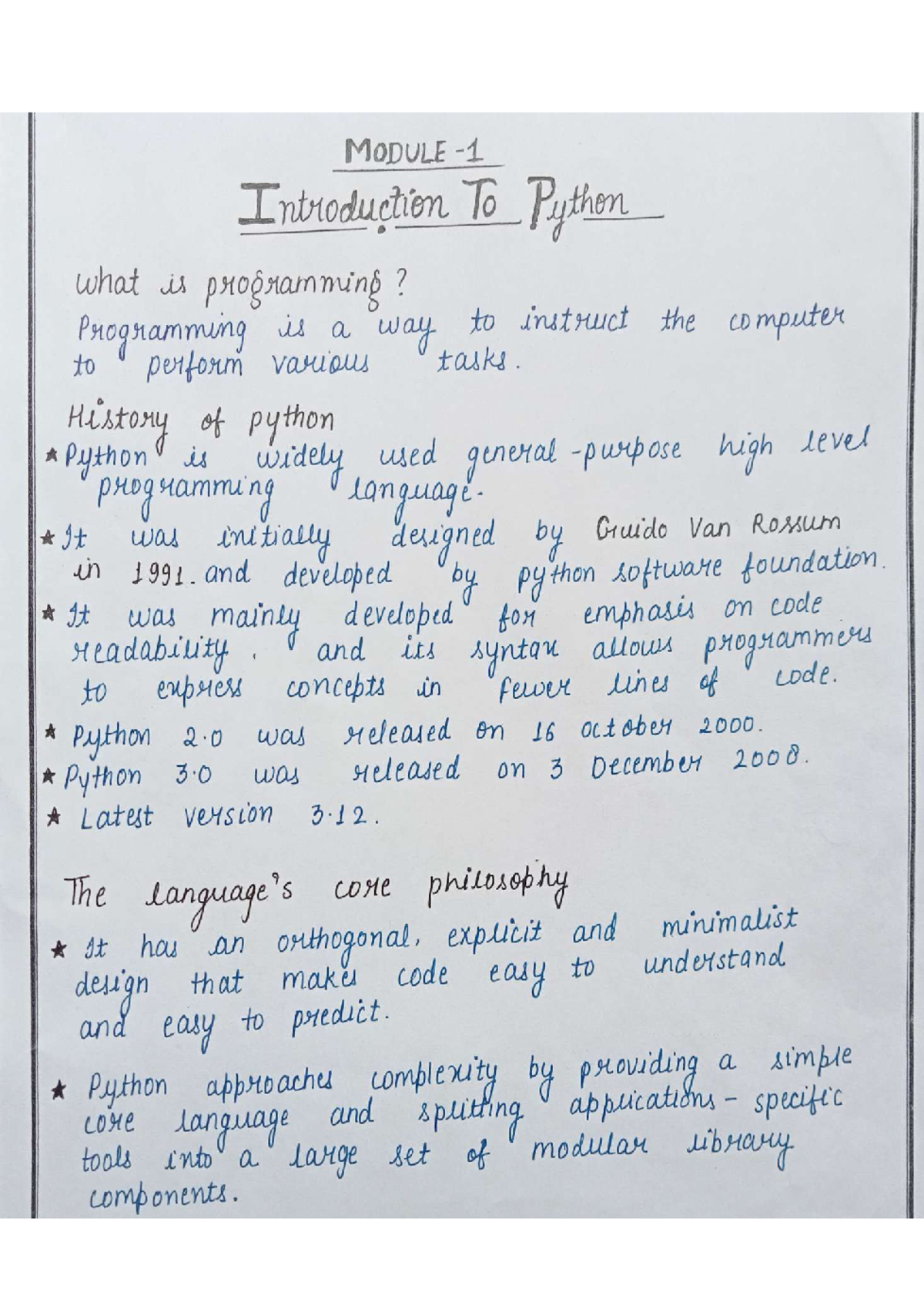 Python Programming (CS101) - Unit 1 Notes and Concepts - Studocu