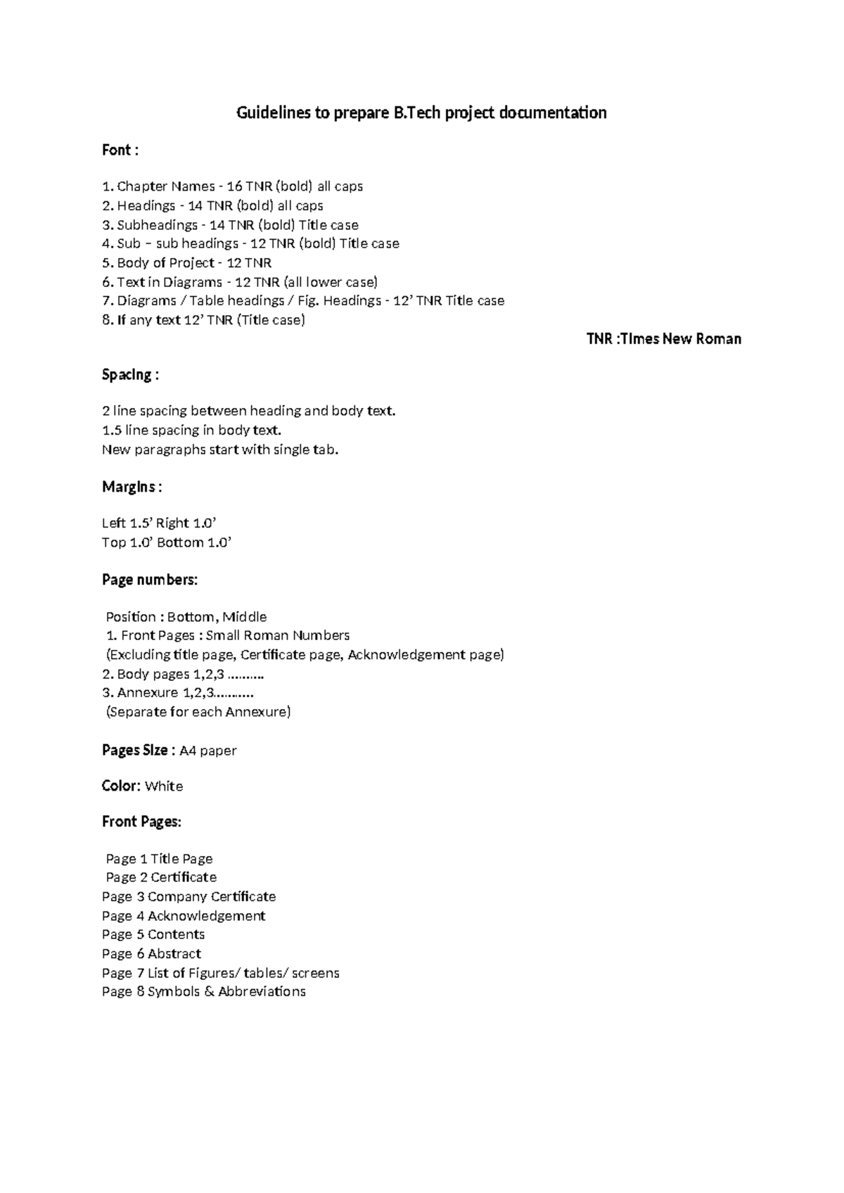 B.Tech Project Documentation Guidelines: Formatting & Structure - Studocu