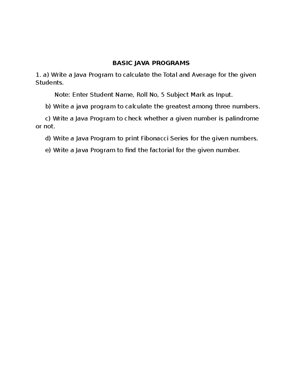 Basic JAVA Programs - Object Oriented Programming - BASIC JAVA PROGRAMS ...