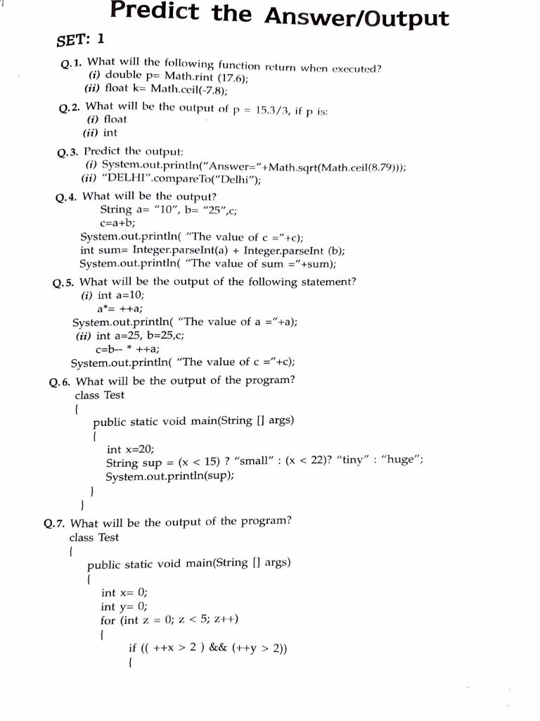 Sample Output Based Questions Java | Download Free PDF | Computer ...