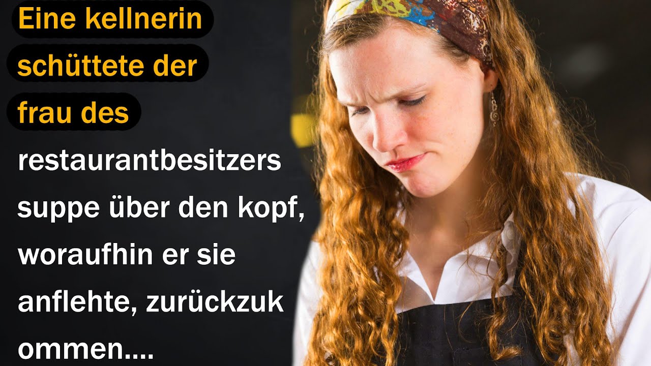 Eine kellnerin schüttete der frau des restaurantbesitzers suppe über ...