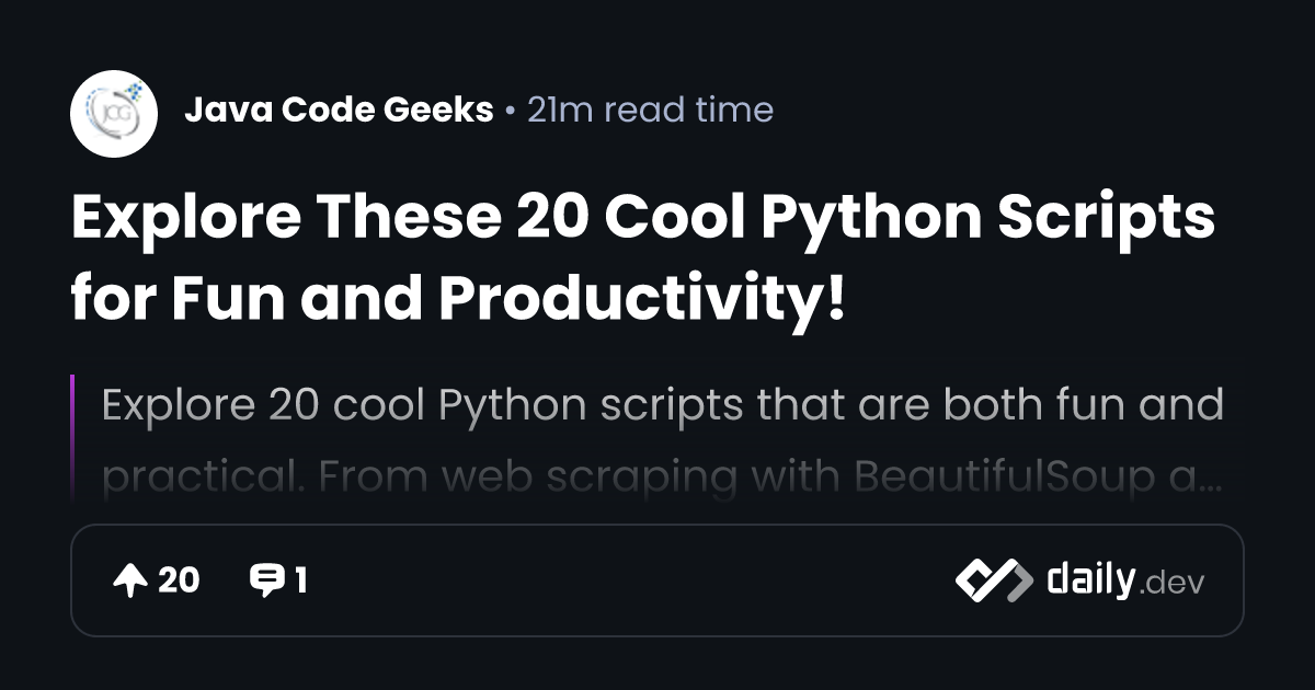Explore These 20 Cool Python Scripts for Fun and Productivity! | daily.dev