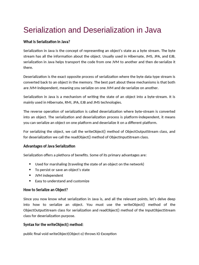 Serialization and Deserialization in Java (1) | PDF | Java (Programming ...